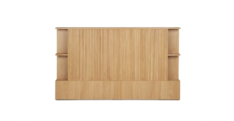 With its solid oak tambour and modern open-concept shelving, the Kouva Headboard is a spacious new home for your alarm clock, dangly vine plant, the three-day-old water glass you should probably rinse out, and so much more.